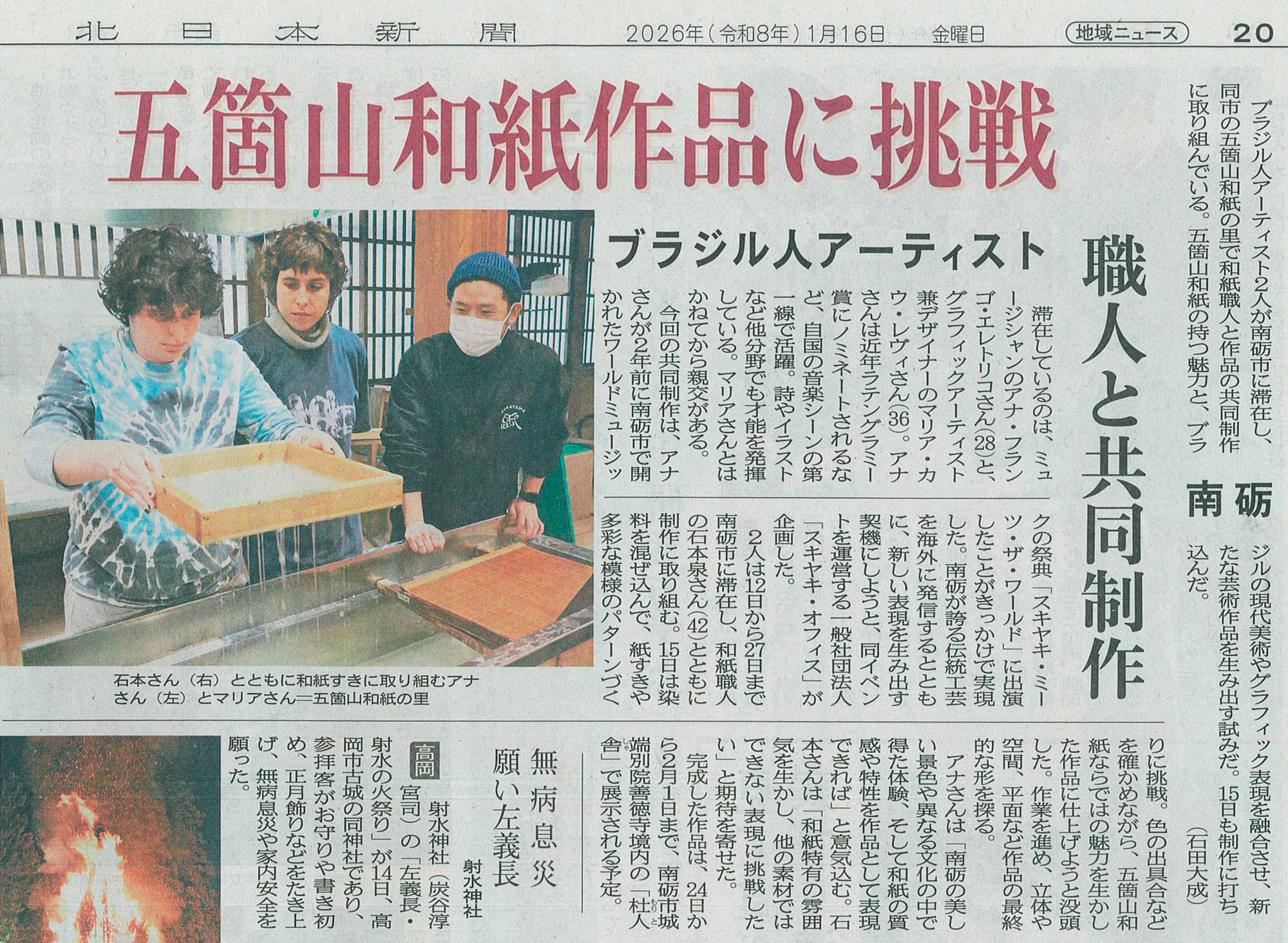 アーティストとの約1週間の共同制作を終え、これから城端の「杜人舎(もりとしゃ)」にて作品の展示がスタートいたします。制作期間中は様々な実験をくり返し、ダイナミックで繊細な作品がたくさん生まれました。24日、25日はアーティストとの交流会が催されます。ぜひ、お越しください。
